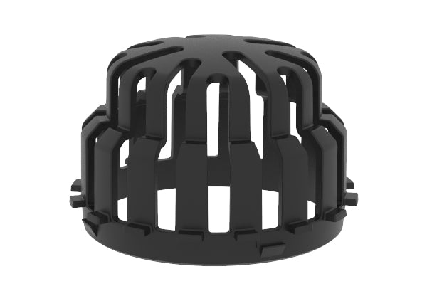 - Includes 2 x 4 corrugated pipe connectors with knock-out plugs, 1 x black grate and 1 x debris guard