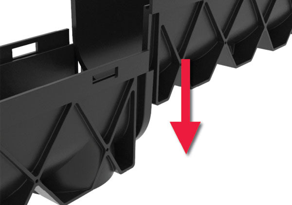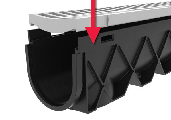 Anti-flotation feet stop channel from moving or floating during the concrete pour and beds the channel directly on the prepared trench base.