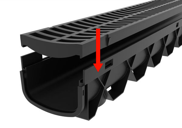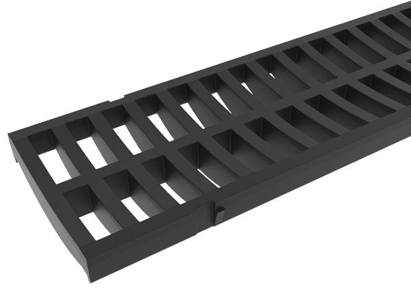 Prevent outdoor flooding and pooling water with the RELN Storm Mate low profile channel drain. The shallow depth design can accommodate the most challenging applications around the home. A straight-line system with bottom outlet discharge and ADA compliant pedestrian safe heel guard grate is perfect for paths and driveways. Available in 40 in. lengths that are interlocking to create longer lengths as desired. Storm Mate kit includes 2 x end caps.